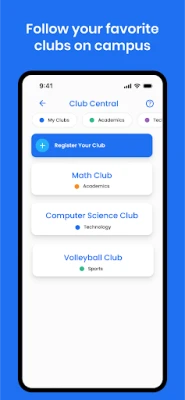 - Clubs list with detailed descriptions, meeting times and reminders, contact - information, and filter by category