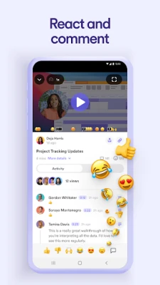 Using Loom, you can collaborate with your team, add time-stamped comments and reactions to those videos, and save videos you’ve recorded to your device. Now, you can spend less time crafting the perfect email in-between meetings, and say it with video using Loom for Android.